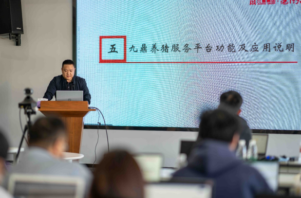 2023年集團的亮點之一是建立九鼎養(yǎng)豬服務(wù)平臺。研發(fā)中心江書忠博士為大家講解《九鼎養(yǎng)豬服務(wù)平臺之九鼎母豬生產(chǎn)成績改進及提升系統(tǒng)方案》。江博士介紹當(dāng)前背景下,九鼎必須構(gòu)建母豬生產(chǎn)成績改進及提升系統(tǒng)方案。江博士分享了九鼎試驗基地案例,母豬各環(huán)節(jié)飼養(yǎng)目標及常見問題的說明及影響母豬生產(chǎn)成績的因素。最后重點講解九鼎養(yǎng)豬服務(wù)平臺功能及應(yīng)用說明,并在2023年研發(fā)中心重點工作中對九鼎母豬生產(chǎn)成績改進及提升系統(tǒng)方案規(guī)劃相關(guān)課程。
