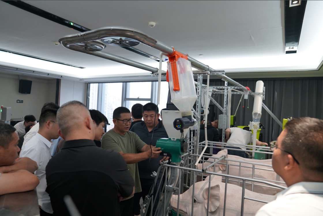 隨后潤(rùn)農(nóng)羅清經(jīng)理介紹母豬飼喂器、懷孕飼喂器和粥料器等智能飼喂設(shè)備的應(yīng)用場(chǎng)景及價(jià)值點(diǎn),展示飼喂器實(shí)物和講解安裝操作方法。接著至潤(rùn)農(nóng)展廳進(jìn)行參觀,現(xiàn)場(chǎng)進(jìn)行設(shè)備安裝調(diào)控操作和控制平臺(tái)操作的培訓(xùn),確保每個(gè)服務(wù)老師能講、能裝、能調(diào)試、能維護(hù),為客戶實(shí)現(xiàn)膘體管控+潤(rùn)農(nóng)飼喂器的“一條龍”服務(wù)。